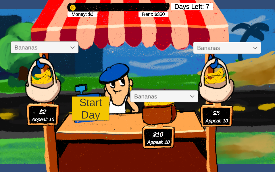 A bodega simulation game where you have to set the price of your fruit based on market forecasts.